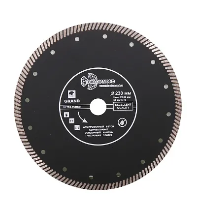 Алмазные диски предназначены для сухой и мокрой обработки прочных строительных и отделочных материалов: бетона, камня, кирпича, мрамора, гранита, черепицы, гипсовых плит, асбеста, шифера, керамики. Диски с алмазным напылением эффективнее абразивного инструмента за счет постоянного диаметра, обеспечивающего стабильную глубину резания, и особой конструкции, позволяющей выполнять работу быстрее и эффективнее. Утолщенная ступица и усиленная основа предотвращают изгибание и деформирование инструмента во время обработки твердых материалов. Промежутки между сегментами и перфорация обеспечивают удаление пыли и шлама из зоны резания.
